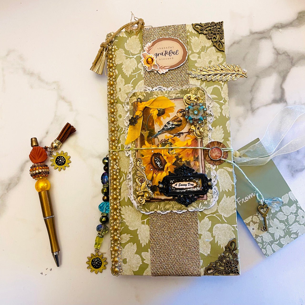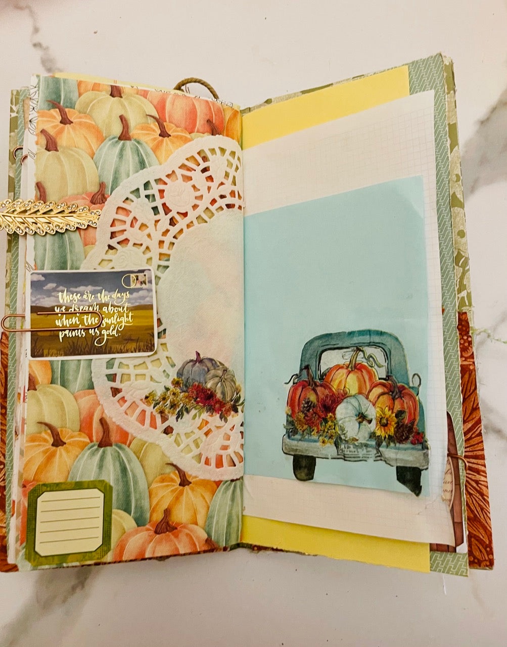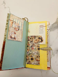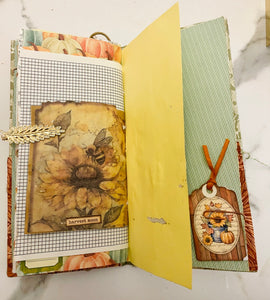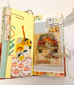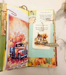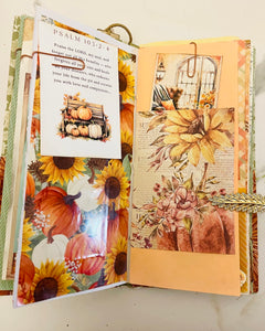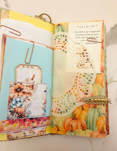 This is a fall prayer junk journal. It has 68 pages front and back. It's filled with tons of journaling space, stickers, ephemera, gratitude scripture journaling cards, die cuts, bookmarks and more. With the Thanksgiving season approaching this would make a great gratitude prayer journal.